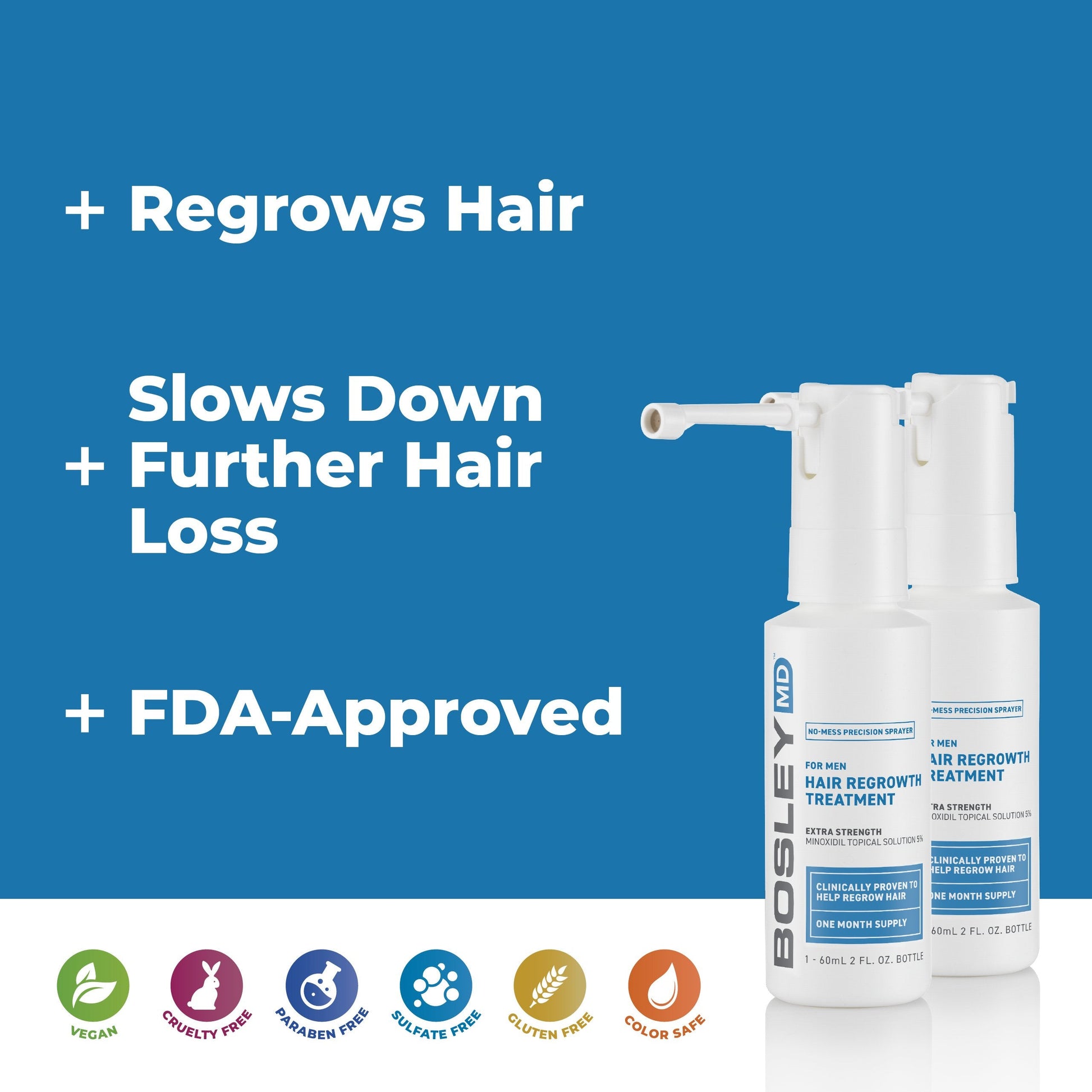 Leave-in hair regrowth treatment with Minoxidil, clinically proven to help regrow hair and slow down further hair loss. Contains FDA-approved Minoxidil – 5% strength for men.