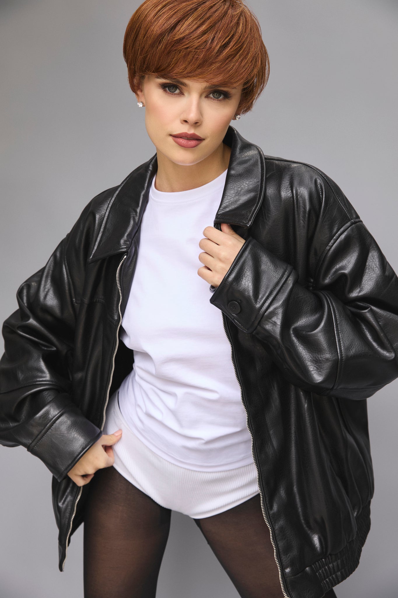Charlotte from our Alexander Couture Collection is short length heat friendly wig. This straight ready-to-wear wig is a choppy, urchin pixie style. This feminine and stylish short cut offers versatile and incredibly cute. You can effortlessly achieve a chic and trendy hairstyle that is both fashionable and low maintenance. Charlotte features an extended nape and a long fringe, adding a touch of sophistication and flair. The heat-friendly fibers used to create this wig allowing for easy styling and customization. Charlotte is machine made with adjustable tabs in the back-nape area to allow a more comfortable fit. The result is a comfortable fit with a natural look that is both fun and stylish.