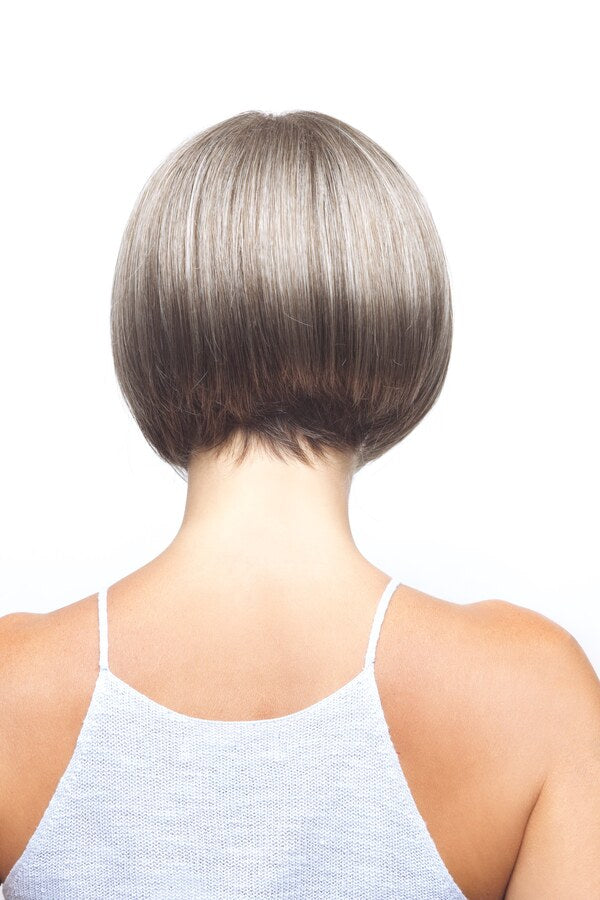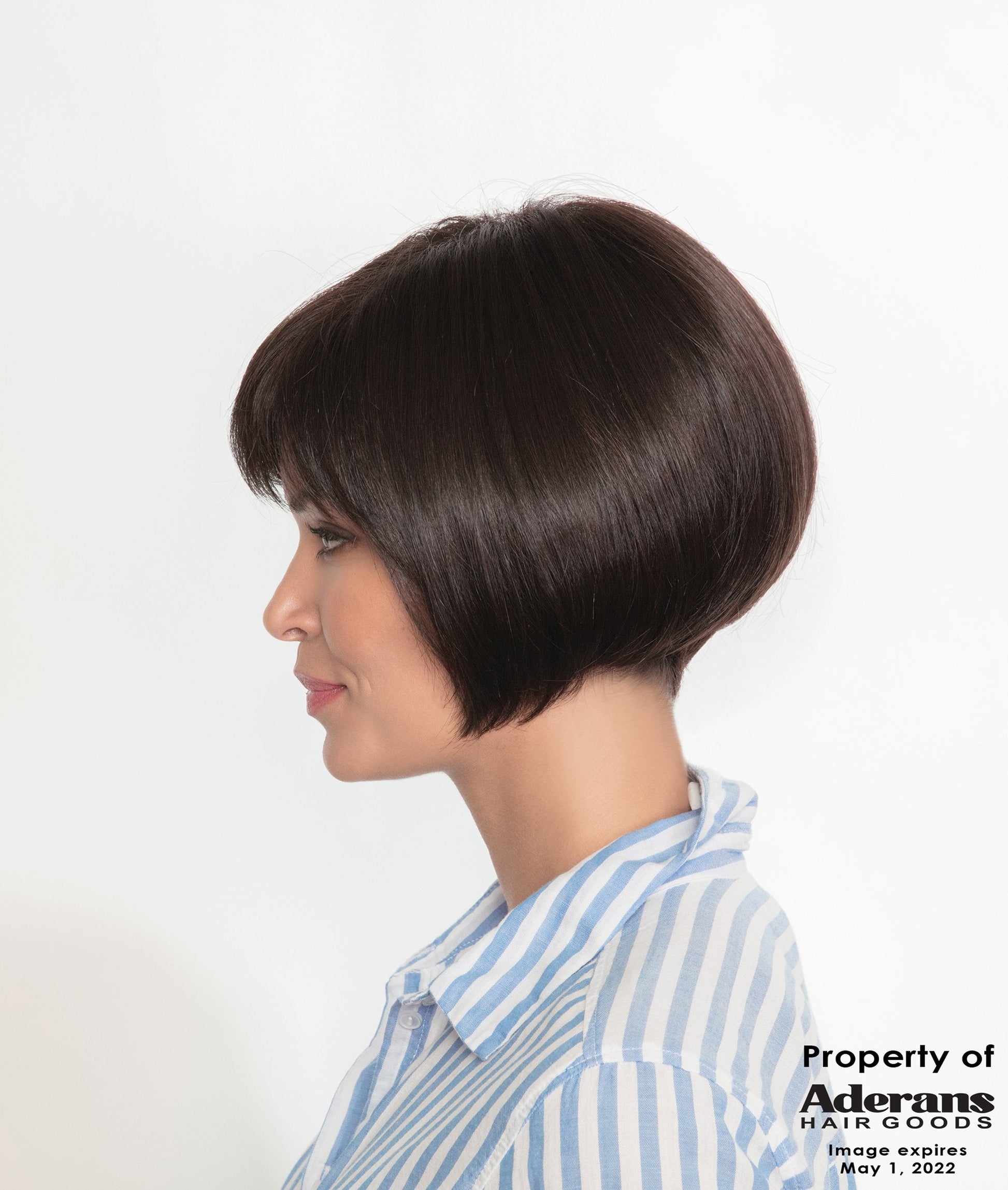Cory is a short-length synthetic wig from the Noriko Collection. This classic bob has straight ready-to-wear hair that frames the face with soft textured fringe. The cap construction is machine made with adjustable tabs in the back nape area to allow for a comfortable fit.