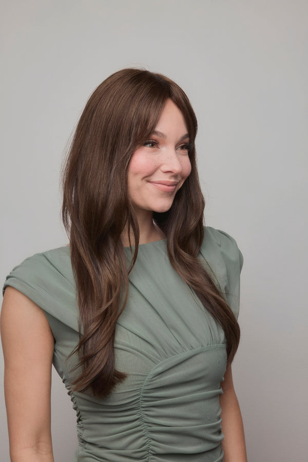 Diamond Topper from our Amore Hair Enhancement Collection is a mid-length human hair topper. This straight ready-to-wear topper is a quality human hair enhancer with a finely shaped base constructed to fit perfectly secure while adding density. Its Monofilament Wigs cap construction gives you a light breathable base construction and provides the ultimate versatility and comfort.