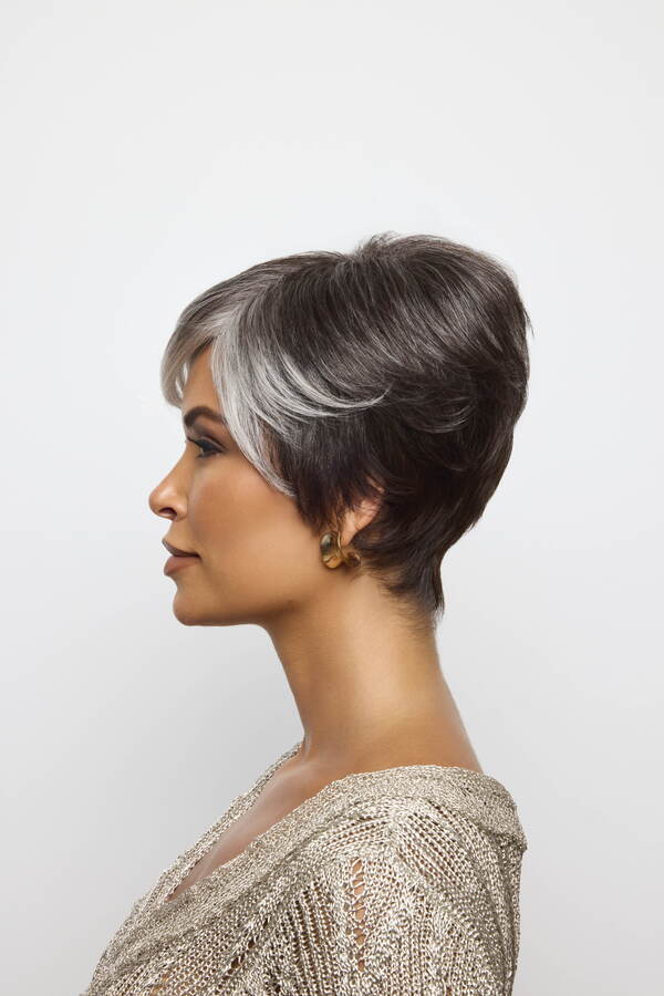 Eva is a short-length synthetic wig from the Noriko Collection. It has straight ready-to-wear hair that is tightly tapered. It features an inverted bob with soft top layers with a side swept fringe. The cap construction is machine made with adjustable tabs in the back nape area for a comfortable and easy to wear fit.