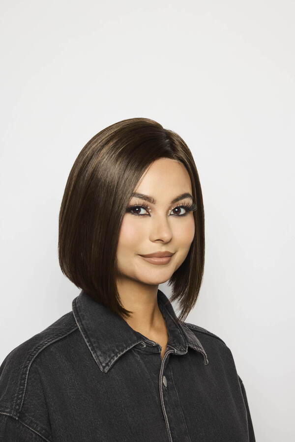 Kai is a short-length synthetic wig from the Hi-Fashion Collection. It has straight ready-to-wear hair sharply cut into a sleek bob giving you the perfect sophisticated look. The cap construction is lace front with a lace part and adjustable tabs in the back nape area allowing you to create a comfortable fit.