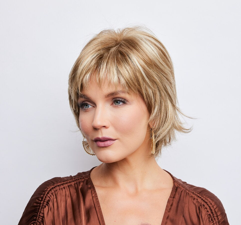Ryan from our Noriko Collection is a short-length synthetic wig. This straight ready-to-wear wig is an eye catcher with its feathered layered cut. Ryan is Monofilament Wigs top with adjustable tabs in the back nape area to allow a more comfortable fit. The Monofilament Wigs top gives you a light breathable base and a more realistic appearance to create a natural illusion which allows you to change the direction of the part on the wig. It provides the ultimate versatility and comfort.
